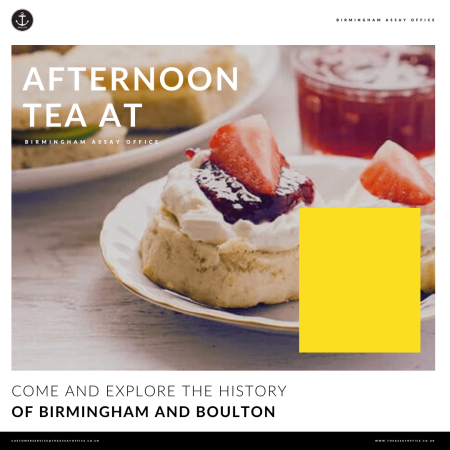 You’ll dine in our Silver Room and enjoy an Afternoon tea that includes a selection of sandwiches, pastries, and scones with a choice of tea or coffee. You will also learn about the long history of hallmarking and the success of the Birmingham Assay Office since it was founded as a result of Matthew Boulton’s efforts in 1773.